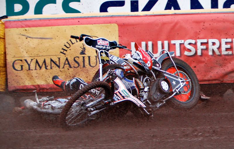 En förskjuten start på en timme och en kvart gjorde att det blev lite stressat för att hinna med till tidningen. Vi får nog tacka banarbetarna som gjorde ett hästjobb med att forsla undan vällingen och lägga dit torrt material så det kunde bli race. Trots detta så blev det ett par olyckor. Inga allvarliga som tur var.